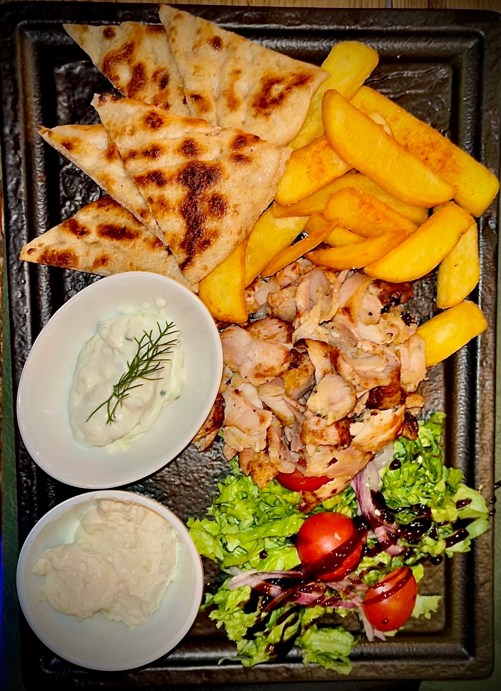 Our signature Souvlaki, a taste of Greece in every bite. Tender, marinated meats grilled to perfection, capturing the essence of traditional recipes passed down through generations. This photo embodies the heart of Ristopub Al Fontego's culinary experience.